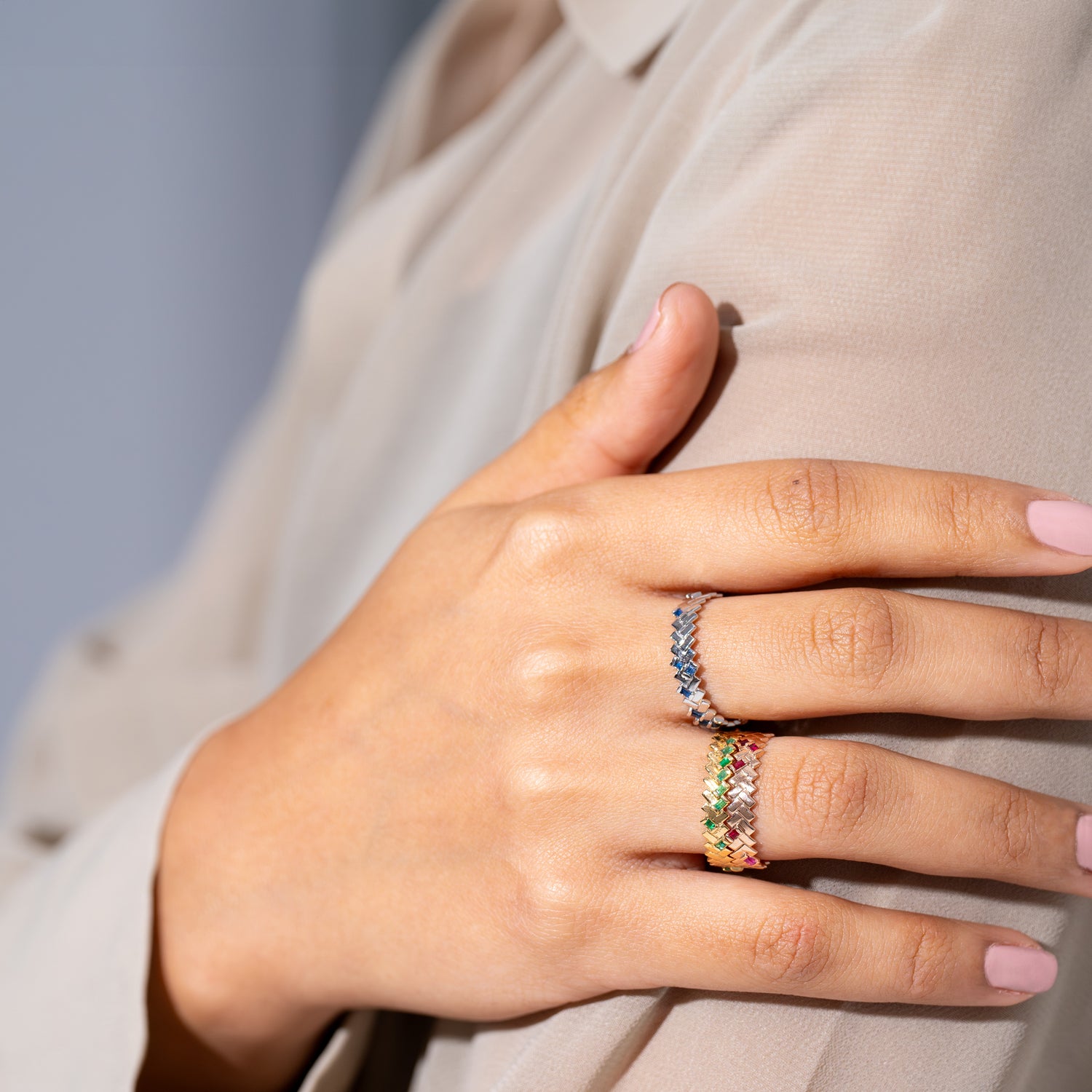 ذكرت المودة، و ذكرت الرحمة في مواقع عدة مختلفة في القرآن الكريم، هذا الخاتم على نمط حِيَس يرمز الى مواقع ذكر المودة و الرحمة ف القرآن الكريم في خاتم واحد، كما يميِّز الموقع الوحيد الذي ذكرتا به معاً، في آية واحدة بفص الماس واحد